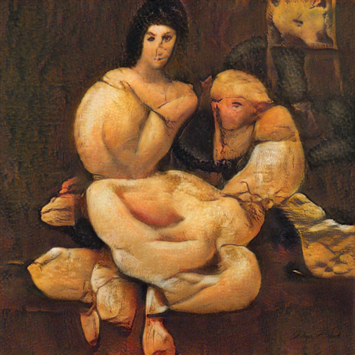 Use the left and right arrows to navigate through DeepBlackās creations. Using the brush icon, you may change the background.